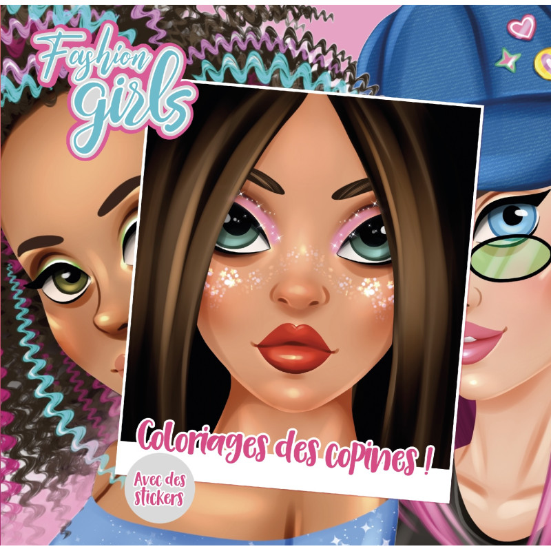 Découvre toutes mes copines, colorie les plus jolies fashion girls puis décore tout ce que tu veux avec les autocollants !