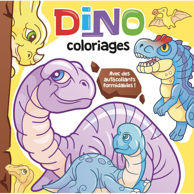 De très beaux dessins de dinosaures à colorier et plein d'autocollants pour tout décorer.