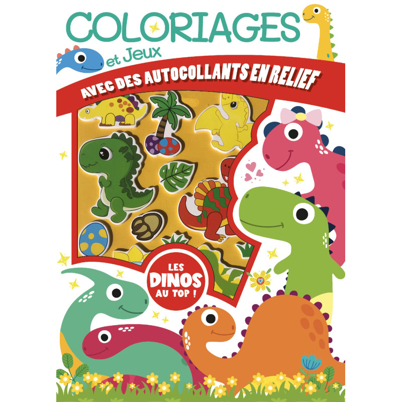 Coloriages et Jeux avec autocollants scintillants en relief - Les dinos