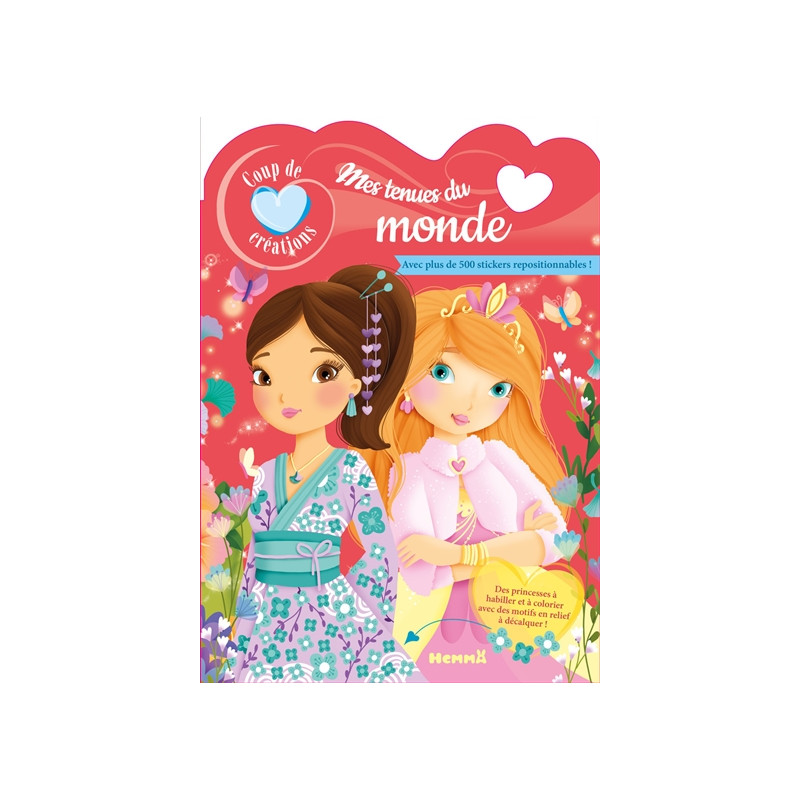 Des princesses du monde entier à colorier et à habiller avec plus de 500 stickers repositionnables. Des dessins en relief sur la couverture permettent de créer des motifs sur les robes des modèles.