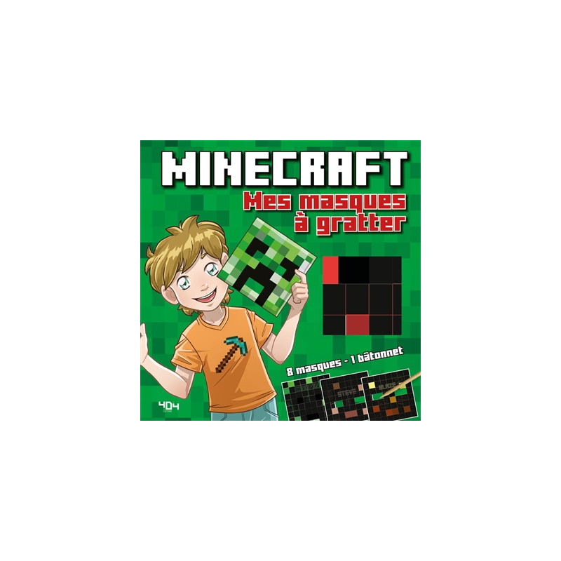 Huit masques prédécoupés à gratter pour se déguiser en personnages du jeu vidéo Minecraft.