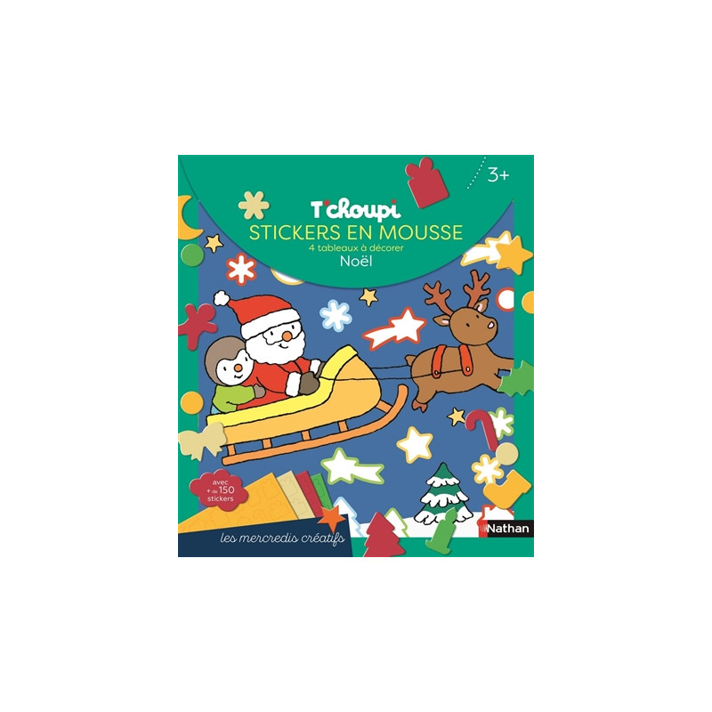 T'choupi : stickers en mousse, 4 tableaux à décorer : Noël