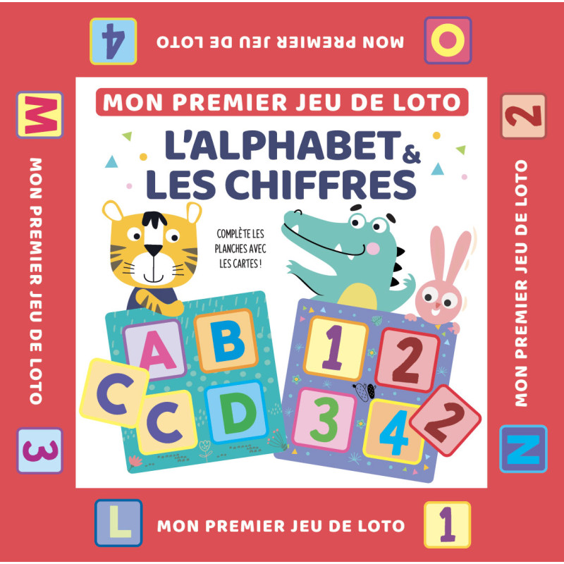 Contenu de la boite: 5 planche de loto recto/verso, 40 cartes Alphabet & chiffre, les règles du jeu.