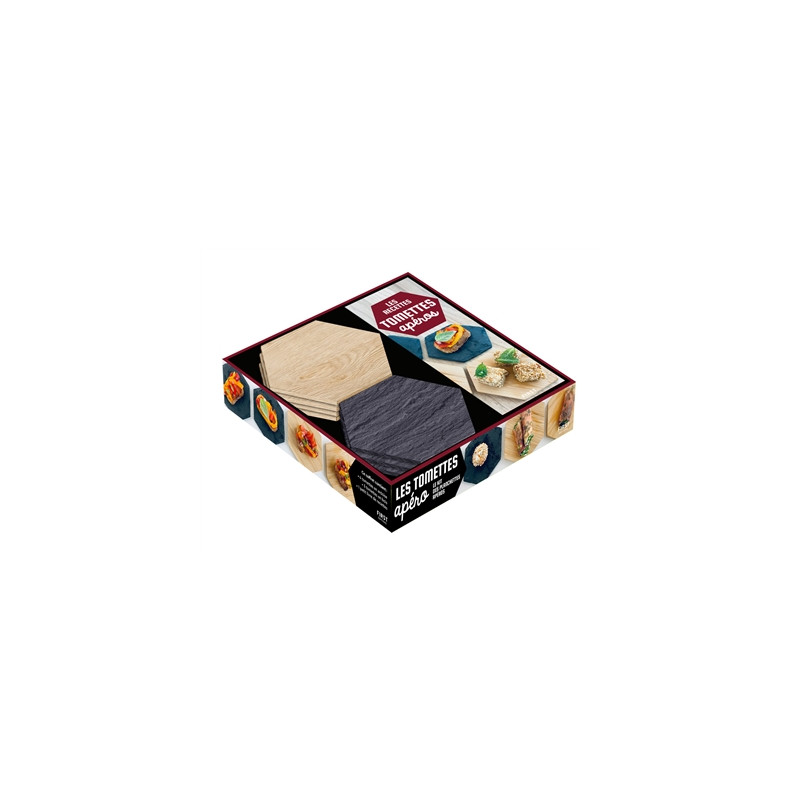 Des recettes pour l'apéritif, accompagnées d'ardoises hexagonales pour les présenter : cookies salés, rouleaux de saumon, chaussons au poulet, involtini de chèvre, entre autres.