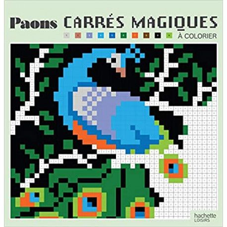 40 modèles de coloriages mystères, façon pixels, pour faire vibrer de couleurs un oiseau fascinant : le paon.