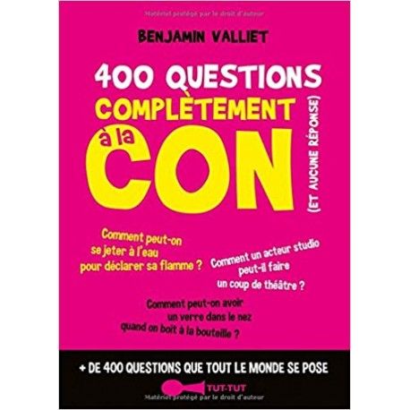 Venez découvrir le recueil le plus intelligent de questions cons, avec des jeux sur le sens des mots à vous faire perdre la tête ! Comment une fille à la poitrine inexistante peut-elle être un gros bonnet ? Comment un écrivain vénitien fait-il pour ne pas être en tête de gondole ? Comment peut-on se renvoyer l'ascenseur dans une maison de plein pied ? Comment un photographe peut-il ne pas atteindre ses objectifs ? Comment un intello peut-il ne pas aimer les tâches méningères ? Comment fait un rugbyman pour ne pas finir pilier de bar ? Comment Batman fait-il pour ne pas téléphoner en numéro masqué ? Arts, loisirs, santé, sciences, vie pratique...
