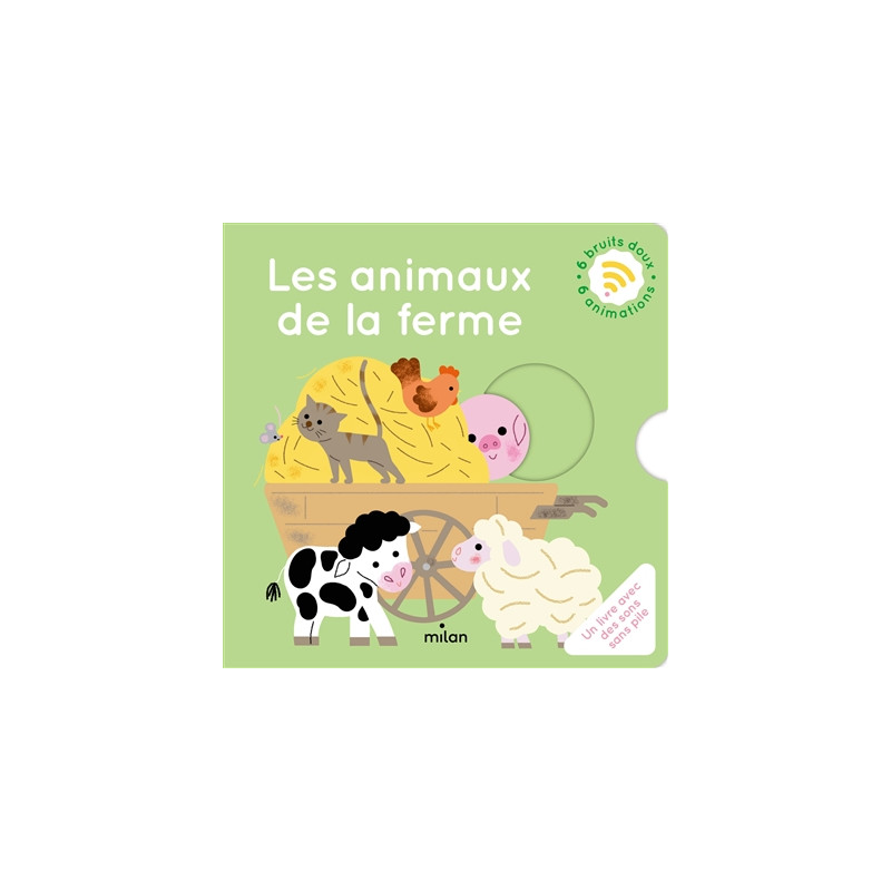 Un imagier pour découvrir les animaux de la ferme, avec des mécanismes sonores, sans piles ni puces insérées, dans chaque double page : le cochon, les canetons, le mouton, le veau, etc.