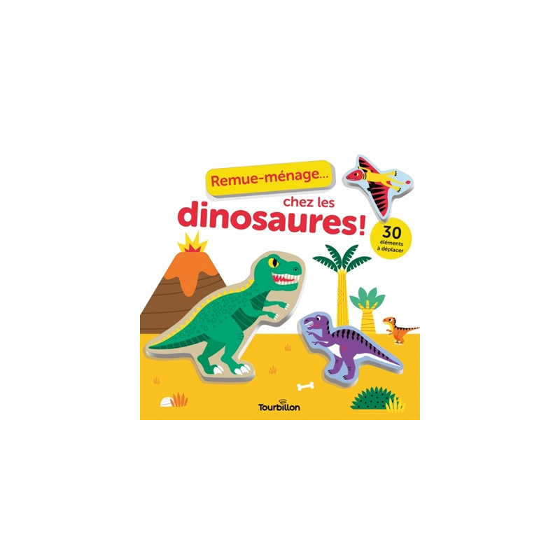 Quel Remue-ménage chez les dinosaures ! Amuse-toi à déplacer les 30 dinosaures, arbres et animaux, et invente tes propres histoires. Un imagier original, amusant et ludique pour apprendre du vocabulaire et développer son imagination.