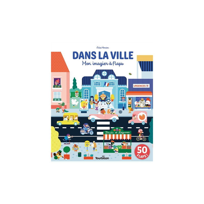 Ouvre les flaps pour explorer les coins et recoins d'une ville ! Pousse les portes du magasin de jouets, regarde à l'intérieur du commissariat de police, accompagne les mariés à leur voiture, charge la poubelle dans la benne du camion...