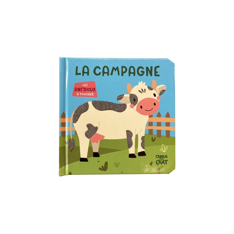 Un imagier avec des matières à observer et à toucher sur chaque page pour découvrir la campagne et les animaux qui la peuplent : la vache, le cheval, la pie, entre autres.