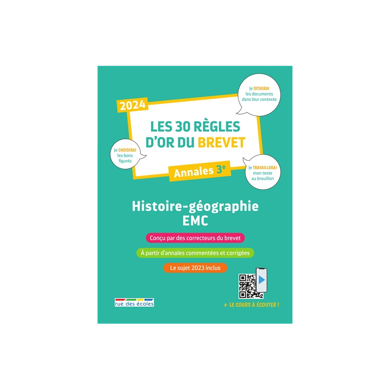 Les 30 règles d'or du brevet, annales 3e : histoire-géo, EMC : 2024