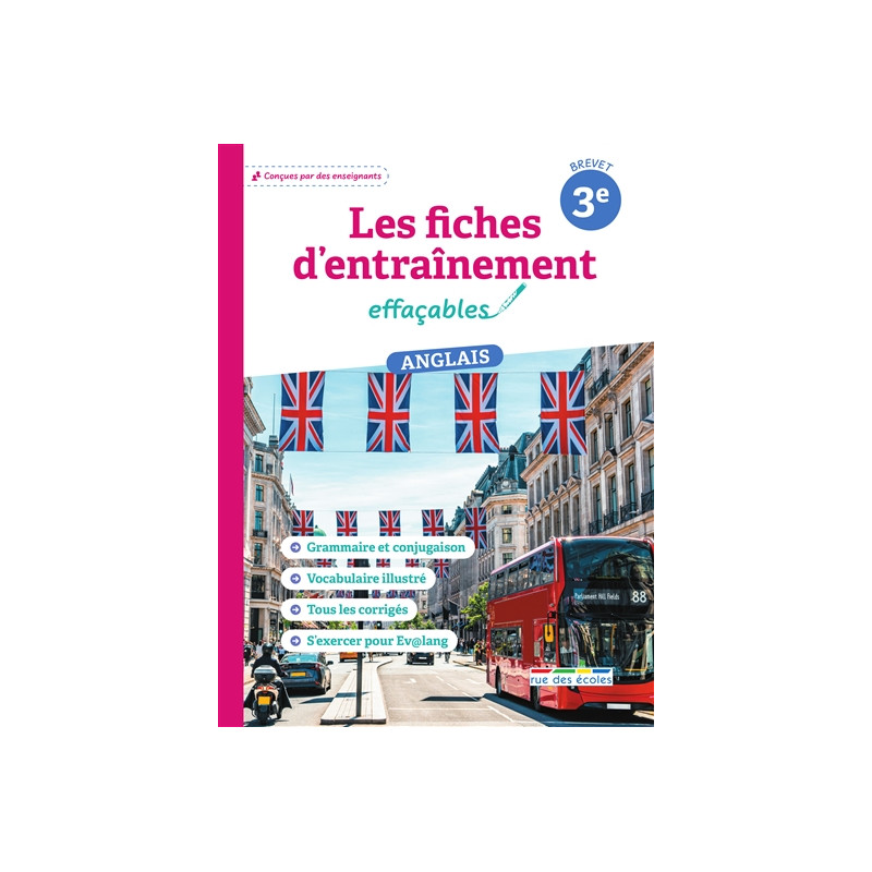 Des fiches effaçables pour s'exercer sur toutes les notions au programme d'anglais de 3e et réviser le test Ev@lang. Avec des mémos, des cartes et des jeux.