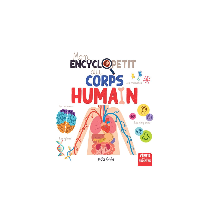 Mon ENCYCLOPETIT du CORPS HUMAIN Une excellente initiation à la découverte du corps humain. Chaque page, plastifiée et entièrement illustrée, dévoile une panoplie d'informations parfaitement adaptées à un lectorat de petits curieux. Les enfants apprendront à connaître les différentes parties du corps, les fonctions de leurs organes, leurs émotions et leurs cinq sens...