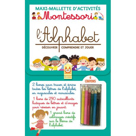 La grande mallette, à emmener partout avec toi, contenant 4 livres. Un livre pour comprendre et apprendre le tracé des lettres de l'alphabet en majuscules, un livre pour maîtriser les mêmes notions avec les lettre minuscules, un grand coloriage créatif sur le thème de l'alphabet et 290 lettres autocollantes pour écrire les mots que tu veux et un abécédaire en image à compléter avec les mots. Tu as aussi 6 crayons de couleur afin de laisser ta créativité s'exprimer. Un formidable voyage dans le temps