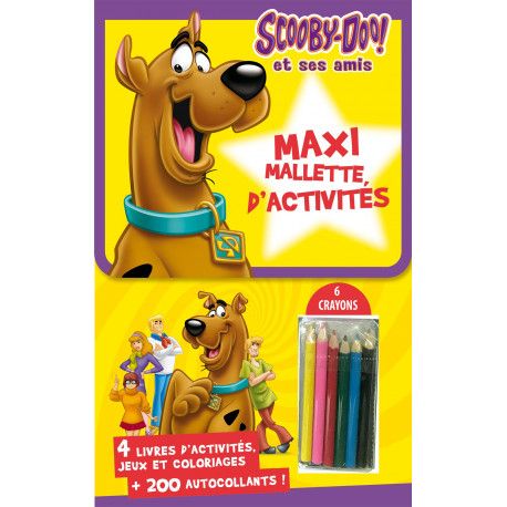 Une grande mallette à emmener partout avec toi contenant 4 livres. Deux livres de coloriages originaux, un livre de jeux et activités puis un livre de + de 200 autocollants Scooby-doo pour tout décorer. Tu as aussi 6 crayons de couleur afin de laisser ta créativité s'exprimer.