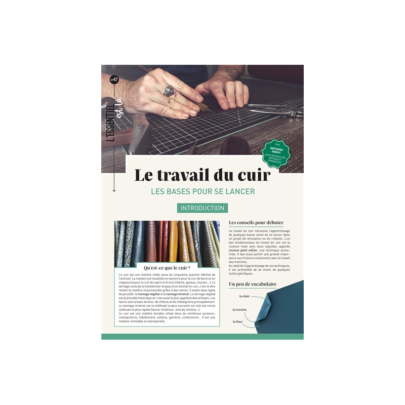 Un guide pour apprendre à travailler le cuir et réaliser ses premières créations à base de cette matière : découvrir le matériel, s'initier au point sellier, savoir quel cuir choisir et comment l'entretenir. Avec, pour débuter, les étapes pour réaliser un porte-cartes.