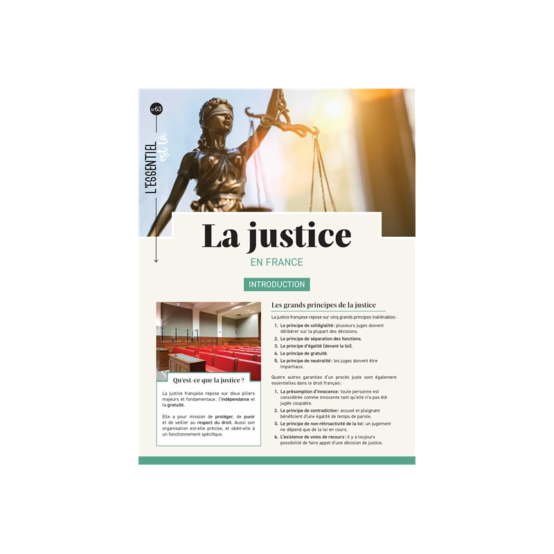 Synthèse décrivant le fonctionnement et l'organisation de la justice en France.