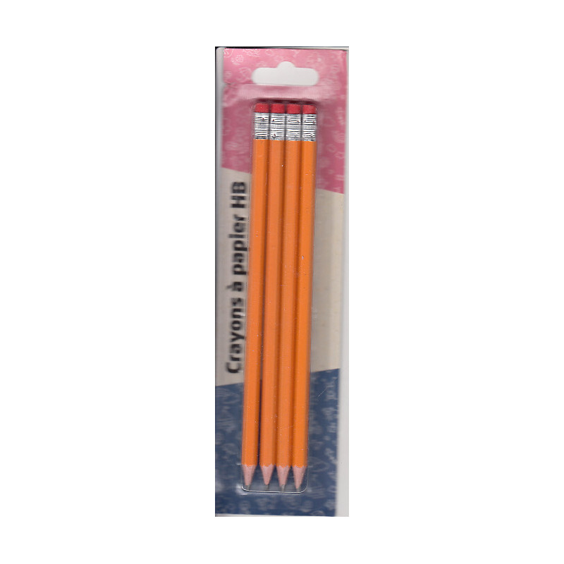 4 crayons à papier mine HB avec gomme