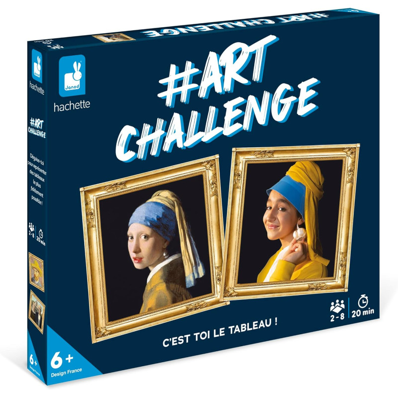 En équipe ou en duel, amusez-vous à représenter les œuvres d’art les plus célèbres en vous mettant en scène derrière le grand cadre à assembler ! Soyez créatifs en vous aidant des accessoires autour de vous pour faire deviner le tableau aux autres joueurs dans le temps imparti ! Ce jeu se compose de 50 cartes tableaux, d'un livret explicatif avec les 50 tableaux, d'un cadre à assembler et d'une règle du jeu uniquement en français. Une partie dure environ 20 minutes. De 2 à 8 joueurs. Idéal à partir de 6 ans