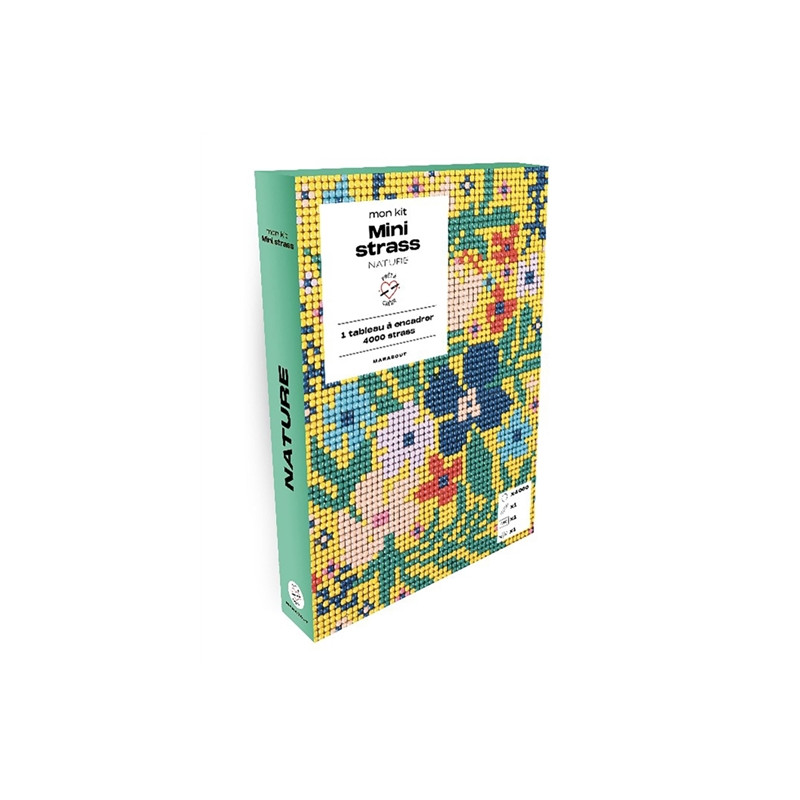 Laissez-vous guider et expérimentez la détente des arts créatifs en suivant les instructions. Tout le nécessaire est founri dans ce kit pour réaliser un superbe tableau scintillant : 4000 strass multicolores 1 tableau encollé format A5 carton - 1 stylet pour placer les strass 1 bloc de cire pour les attrapper 1 petit plateau.
