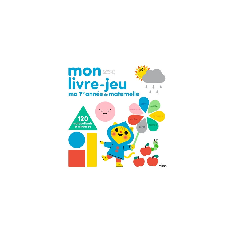Des stickers en mousse repositionnables pour se familiariser avec les notions abordées en première année de maternelle. Les activités sont organisées en six doubles pages thématiques autour de la météo, du temps et de la date, des couleurs, des parties du corps humain ou encore des chiffres et des lettres.