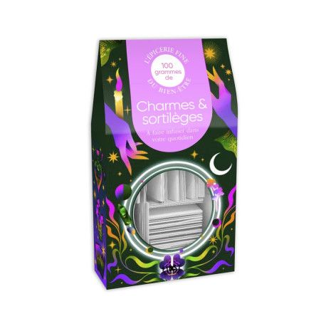 Des livrets sur le thème des sortilèges et des charmes à piocher dans une boîte : les herbes purificatrices, le chèque d'abondance, les infusions magiques, la douche énergétique, les rituels et les fêtes, entre autres.